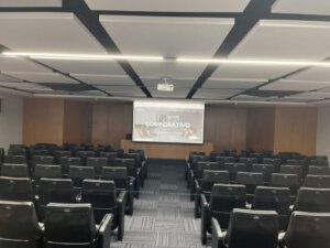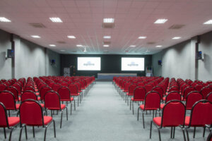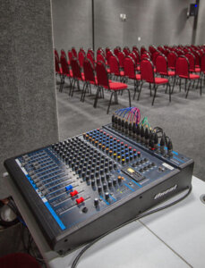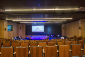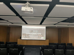 Instalações e preparações tecnológicas e eficientes para salas de auditório, visando o melhor áudio e ótimas telas para melhor aproveitamento do espaço.
