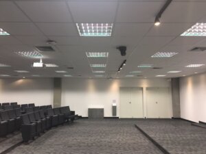 Em muitos casos, essas salas são multiuso, por isso o auditório deve, obrigatoriamente, atender a questões técnicas, propiciar conforto ambiental ao usuário e apresentar grande qualidade estética e sonora. Além de um telão com tamanho adequado ao ambiente e projetor de alta definição para imagens bem definidas.
